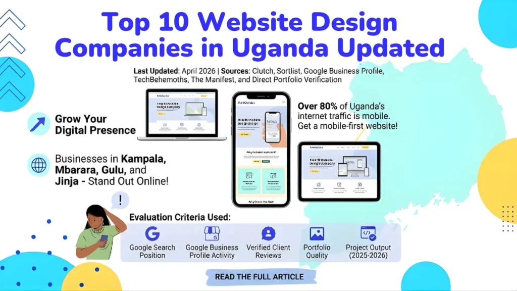 Finding the top 10 website design companies in Uganda takes more than a Google search. This article goes further. Every company on this list was evaluated on what actually matters: where their own website ranks on Google Uganda, how their designs hold up in 2025 and 2026, how active and strong their Google Business Profile is, and what verified third-party platforms say about their work.